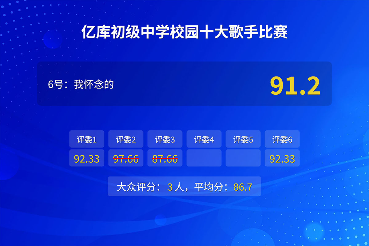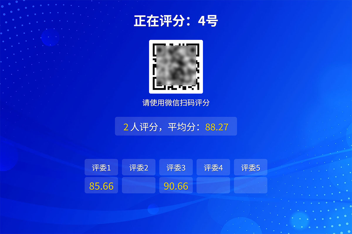 特点:登录即可使用,扫码即可评分,更简单易用,更专业的功能。可将评分过程实时在大屏幕展示,现场人员可扫码参与大众评分。